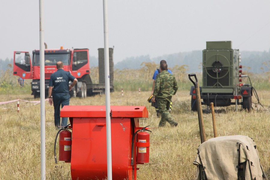 Очаги пожара непрерывно поливают водой с неба — вертолеты и самолеты «бомбят» водой очаги огня и немедленно разворачиваются на заправку. В небе в районе Радченко стоит постоянный гул вертолетных двигателей. Задействованная на тушении пожара авиатехника совершила за день несколько десятков вылетов.
