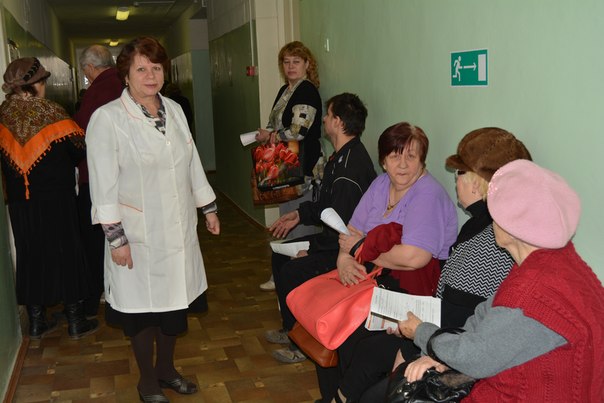 Также все проходили осмотр у невролога и терапевта. Всё было организовано чётко, в коридоре дежурили медсёстры, которые направляли людей в нужные кабинеты, для удобства посетителей в этот день работало три невролога и пять терапевтов.