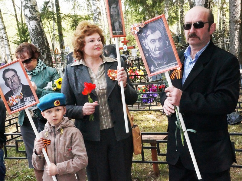 Люди собрались специально для того, чтобы почтить память советских солдат. В 1941 году Новозавидовский был захвачен немцками, и хотя под оккупацией поселок провел считанные дни, сегодня старожилы поселка не забывают о том, что когда-то Новозавидовский был освобожден от фашистов в результате серьезных боев, и сегодня на кладбище поселка в братской могиле покоится 349 солдат и офицеров, отдавших свои жизни за освобождение поселка.