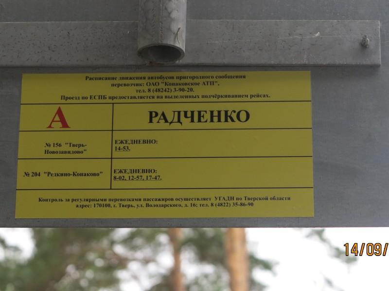 Администрация Конаковского района организовала работы по размещению расписания для всех маршрутов регулярных перевозок на остановочных пунктах «Радченко-Трасса», «Новомелково-Трасса», «Мокшино-Трасса», «Шорново-Трасса», которые располагаются на автомобильной дороге «Москва-Тверь-Великий Новгород-Санкт-Петербург» в границах Конаковского района.